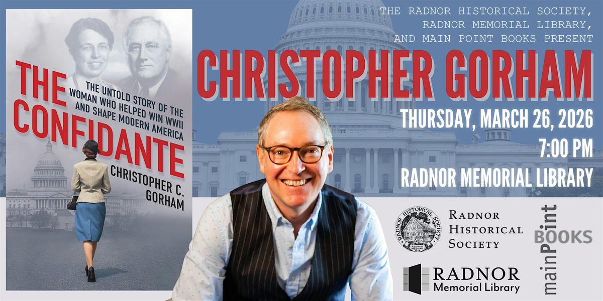 Main Point Books, Radnor Memorial Library, and Radnor Historical Society welcome Christopher Gorham and his new book "The Confidante: The Untold Story of the Woman Who Helped Win WWII and Shape Modern America." His book is the first biography of Hungarian Jewish immigrant Anna Marie Rosenberg, who became a pivotal advisor to FDR during World War II.