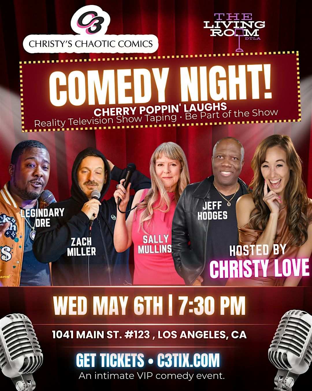 Christy is bringing together a lineup of hilarious comedians for a night of raw, unpredictable stand-up comedy inside The Living Room DTLA. The room is intentionally small so the laughs are big, the energy is electric, and the audience becomes part of the experience. And yes… the cameras will be rolling.