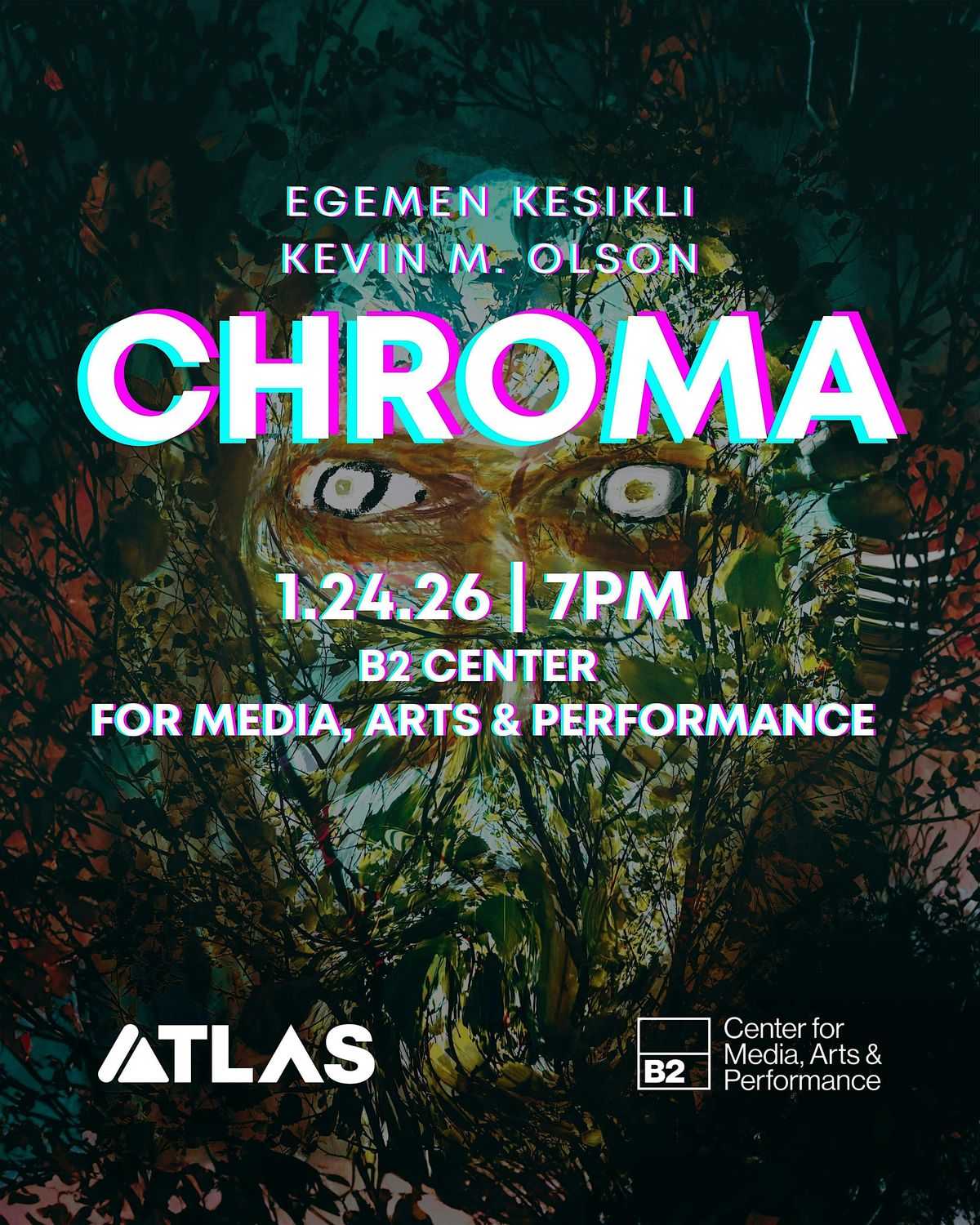 Chroma is an immersive electroacoustic opera in four movements, created and performed by Egemen Kesikli and Kevin M. Olson, with text by Philip K. Dick, Lewis Carroll, Robert Chambers, and Halit Ziya Uşaklıgil. The project aims to bring a millennium-old art tradition into dialogue with contemporary art by integrating microtonal makam singing, avant-garde, live-electronics, and interactive visuals to celebrate the rich modal system of makam music while pushing its boundaries through new mediums.