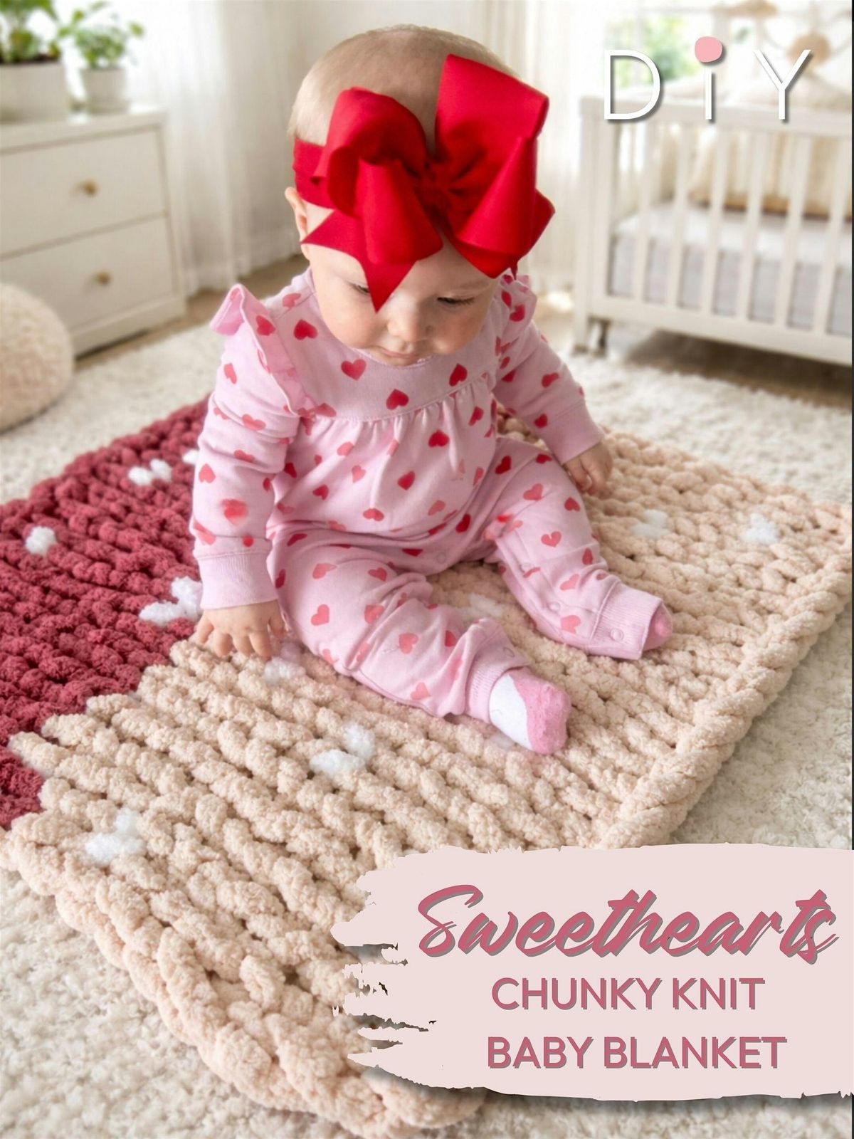 Oh baby! Join us for our best-selling Chunky Blanket Workshop! In this class we will be making a baby blanket with hearts. We will show you how to hand knit - no tools required - your very own chunky, cozy blanket - no prior experience required! PLEASE Put up to two colors that you would like to have in the special instructions box on the 2nd page of the check out process. You will receive three skeins. We will try our best to accommodate all requests. Light Grey, Pink, Red, Light Blue, Yellow, Navy, Cream, Burgundy. Color choices aren't guaranteed, if your selection isn't available you are able to select colors the day of the event for in-stock colors. .