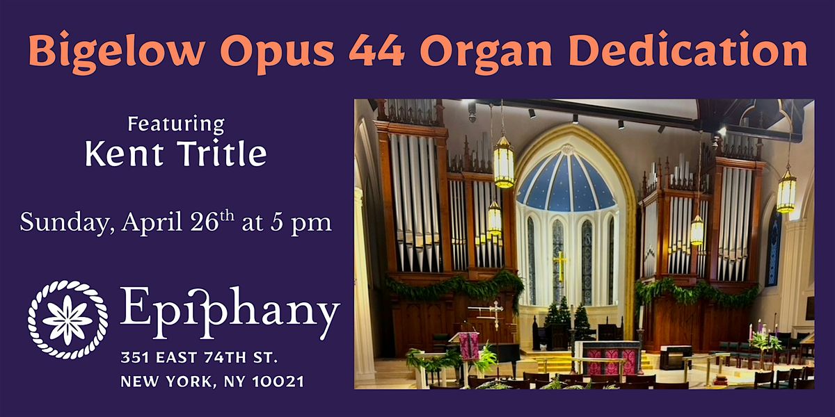 The Church of the Epiphany is delighted to announce the dedication of its new Bigelow Opus 44 pipe organ, featuring nationally renowned organist Kent Tritle, who will perform a 75-minute recital.