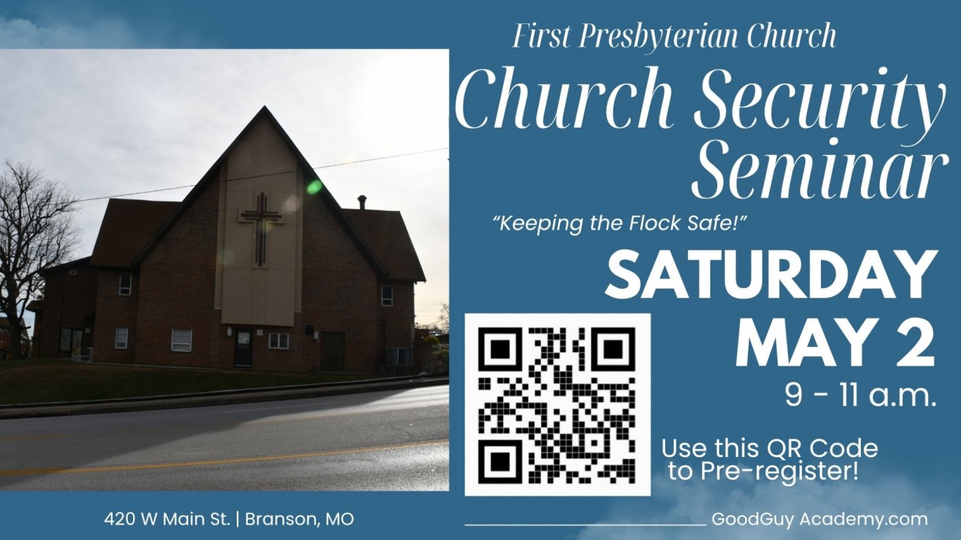Sarting to think about church safety and security or you are looking for ways to improve your security ministry, this free seminar in Branson will be invaluable, covering everything from making the case for improved church security through advanced training considerations. Experts at Branson Good Guy Academy LLC are committed to helping you protect your flock and bring a wealth of practical and technical experience that you can leverage in your church the very next day. Advanced registration is required to receive a three-ring binder containing all class and supplemental material as well as a USCCA certificate of completion. A freewill offering will be taken to offset expenses. Register at: https://goodguyacademy.com/church-security-seminar-registration/