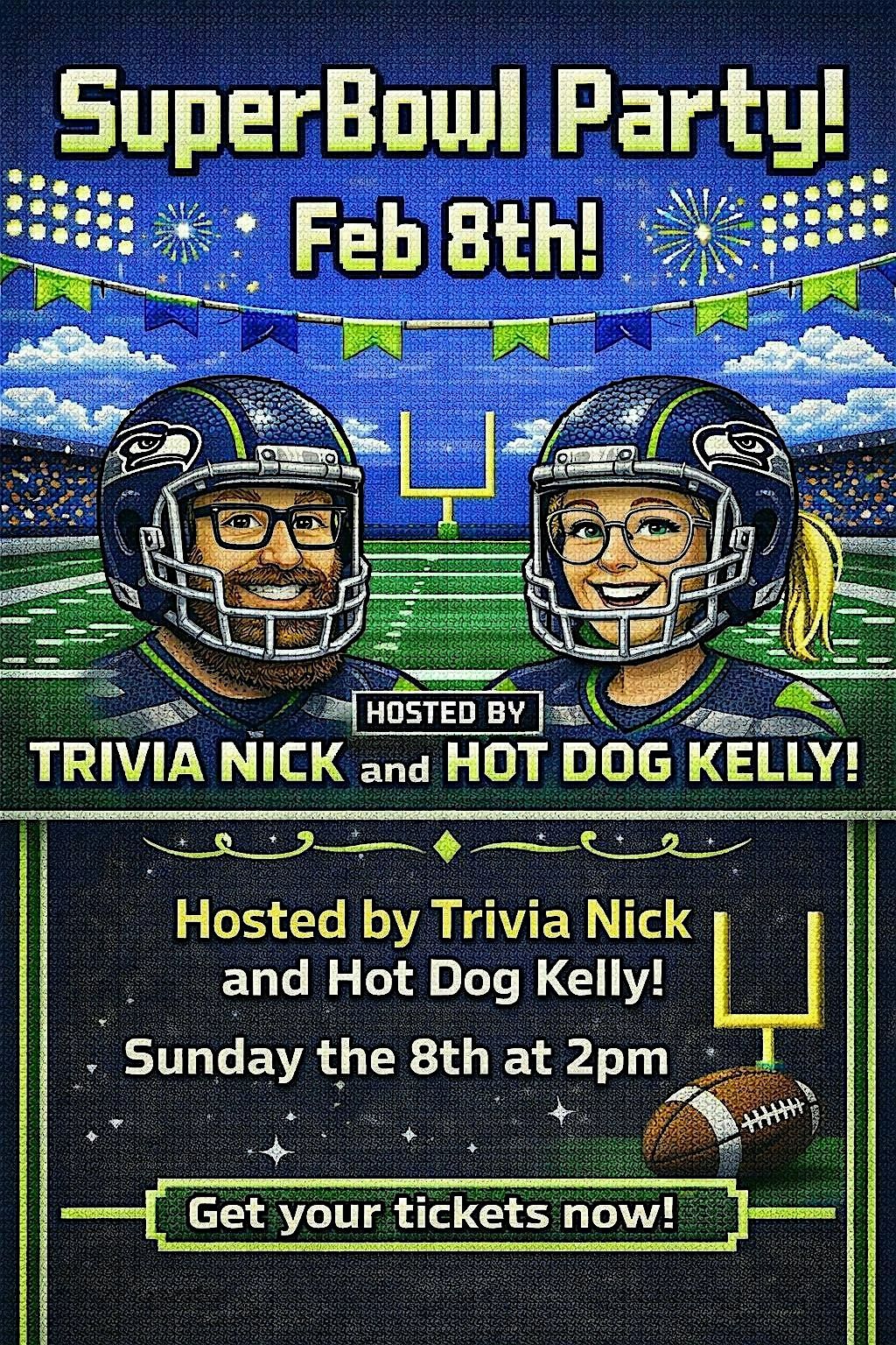 Join us Sunday, February 8th as we cheer on our Seahawks against... sigh... the Patriots. You know the ones. The team that somehow keeps showing up to Super Bowls like that guy who won't leave the party. Well, this year, we're sending them home empty-handed.