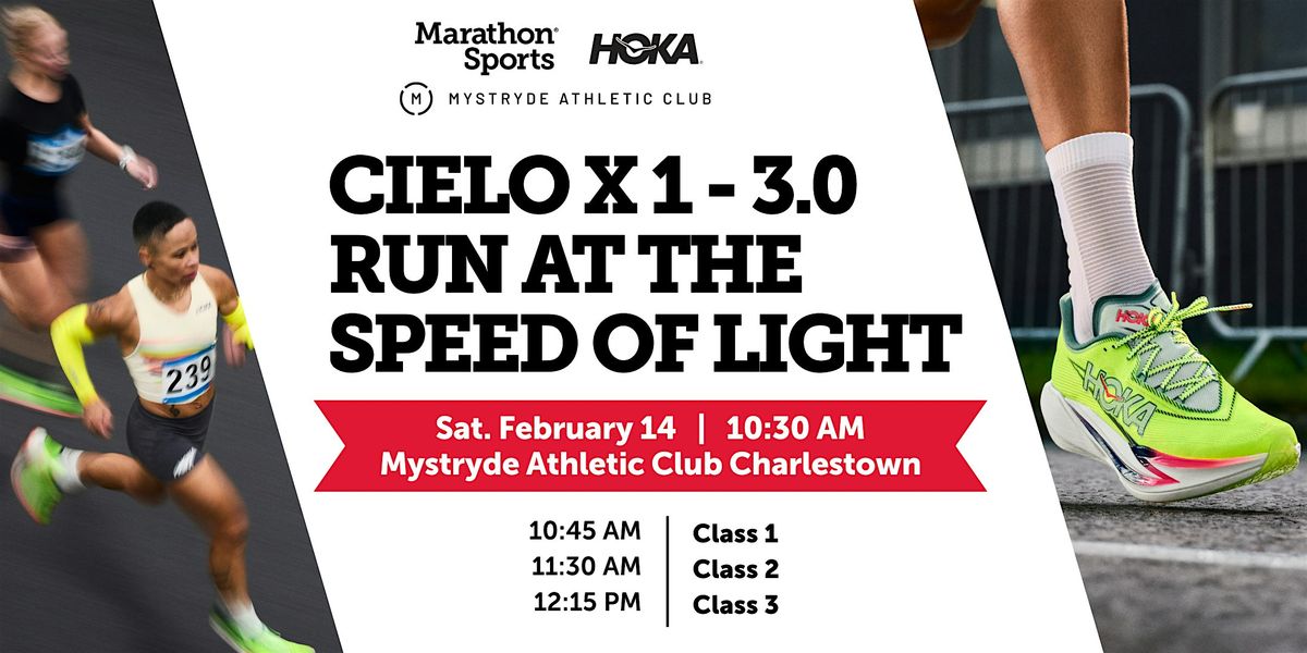 Join Marathon Sports and Mystryde Athletic Club for a high-energy morning built for speed. We’re teaming up to bring you an exclusive chance to test the HOKA Cielo X1 - 3.0 during three mini speed sessions designed to help you turn over, open up, and run at the speed of light.