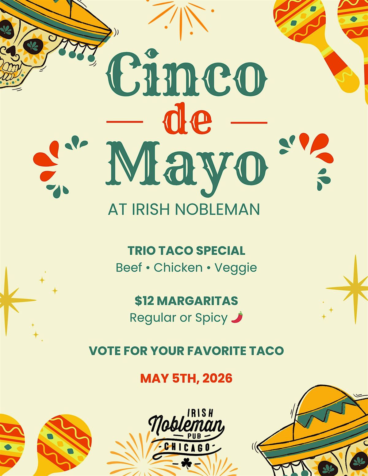 Cinco de Mayo at Nobleman $12 margaritas, trio taco special & vote for your favorite. All day, no reservations.