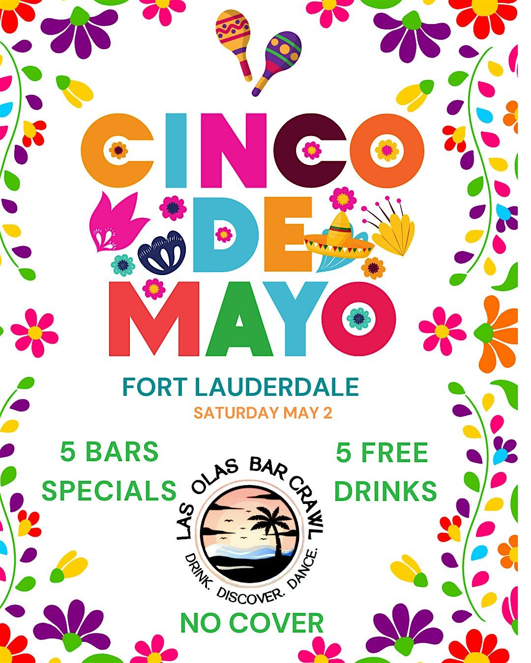 🍹Enjoy 5 FREE DRINK & NO COVER at FIVE participating venues on LAS OLAS BLVD! There's no better way to celebrate the Cinco De Mayo holiday! 🍻 Order your tickets now before they increase in price. 📸There will be a professional photographer there so you can enjoy pictures after the crawl!