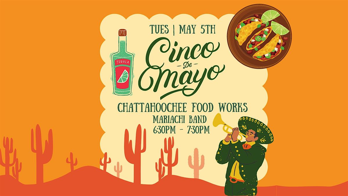 Join us at Chattahoochee Food Works for Cinco de Mayo on Tuesday, May 5. We’ll have live mariachi from 6:30 PM to 7:30 PM, tequila and margarita features at Tequila & Tapas, and tacos from Taqueria La Luz. Come by for a fun, easygoing night with good food, drinks, and music.