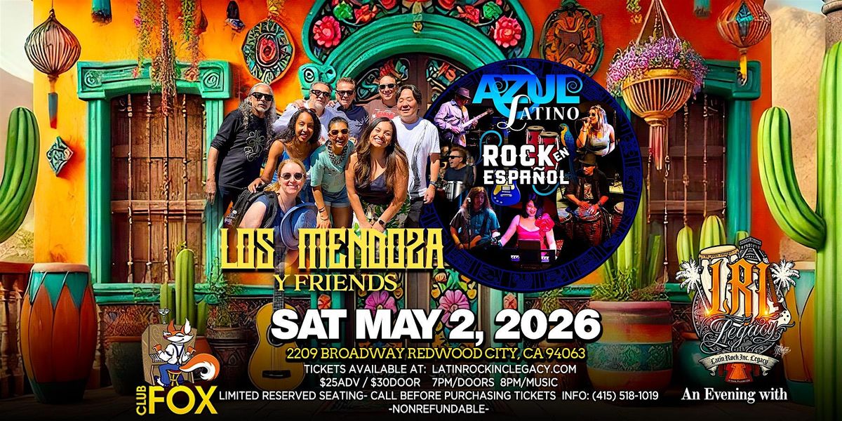 Latin Rock Inc, Legacy is bringing the Cinco de mayo party to Redwood City! Opening the show is Azul Latino, who is going to light the floor for the night. That's right, Live at Club Fox! It’s the perfect chance to catch some amazing live performances and have a blast with friends. Don’t miss out on this awesome night! There is a $10 table reservation fee payable in CASH the night of. All $ goes to the recipient of the Raul Rekow Legacy in Rhythm Cancer Fund to be awarded that evening. There is no need to print out your receipt for this show. Pick up your envelope with your wristbands at the table outside prior to entering the venue. It's that simple. If you would like to reserve a table for four, please call 415-518-1019 before purchasing your tickets. Thank you!
