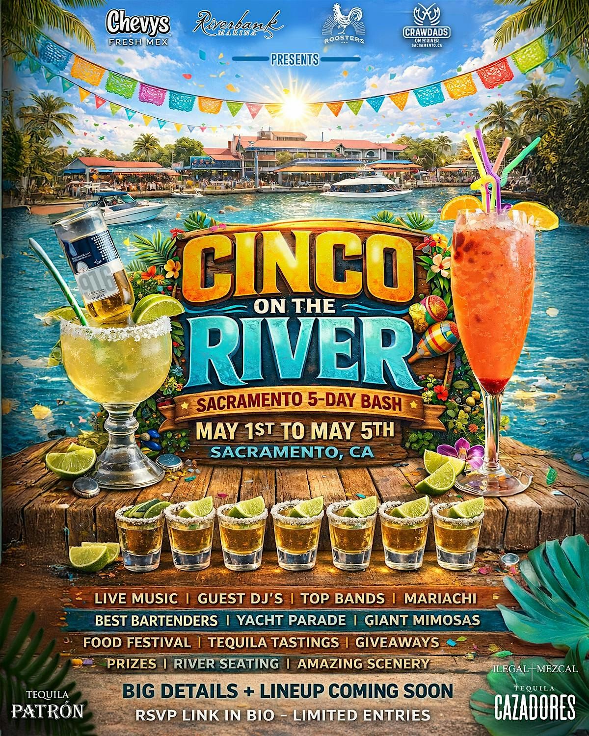 Venues Participating: Roosters On The River, Crawdads On The River, Chevy's On The River at the Riverbank Marina on Garden Highway. 1371 Garden Hwy #200, Sacramento, CA 95833