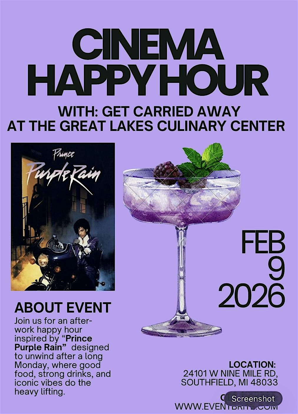 Sip on crafted cocktails, enjoy stone-fired pizza and house nachos, and relax into a cult-classic 80s music film experience centered around a mysterious, guitar-playing frontman, a purple-coded aesthetic, emotional ballads, and rain-adjacent symbolism. The visuals, sound, and mood will feel instantly familiar. Think dramatic, legendary style, and songs that defined an era.