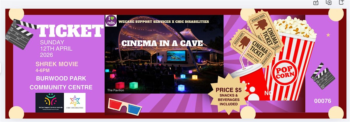 WeCare Support Services Australia and Chic Disabilities invite participants, along with their carers, families, and support workers to join us for Cinema in a Cave, a unique outdoor cinema experience at Burwood Park Community Centre.