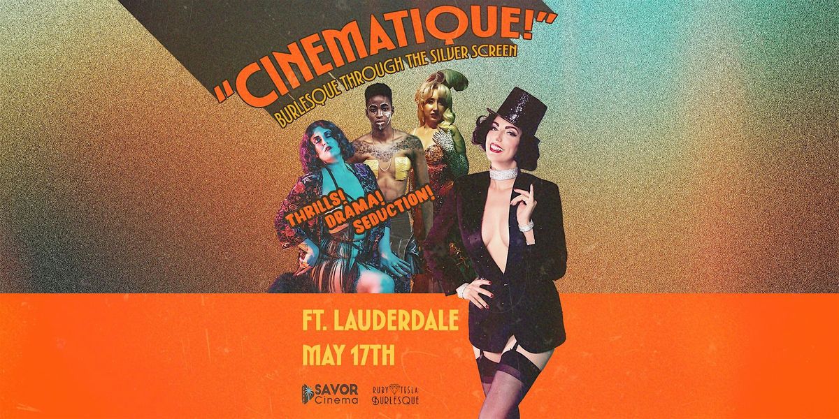 Welcome to Cinematique! Burlesque Through the Silver Screen. Enter the doors of Ft. Lauderdale's historic Savor Cinema (aka Cinema Paradiso) and be transported to a world of wonder, romance, and mystery. This live burlesque show features a talented cast of striptease artists, bringing the silver screen to life through loving tribute performances to classic cinema. Prepare to be thrilled and seduced on this interactive journey for vaudevillians and cinephiles alike. This show features custom media projections as well as live performers for a perfect night out with friends and lovers, now in technicolor!