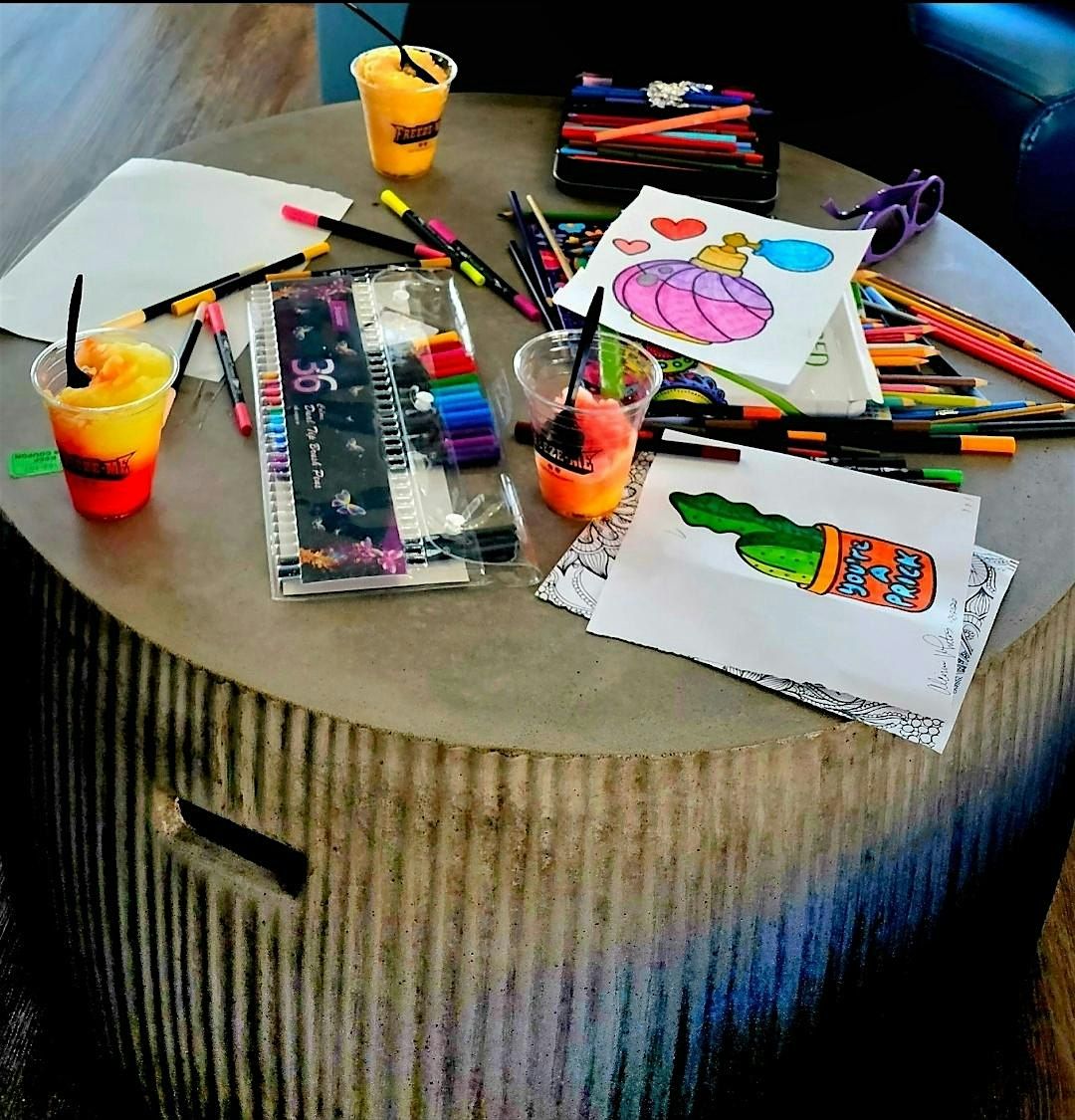 Cini & Chanel’s Coloring Collective is a laid-back, adults-only coloring meetup made for unplugging and unwinding. Think good vibes, good music, creative flow, and real connection —no screens required.