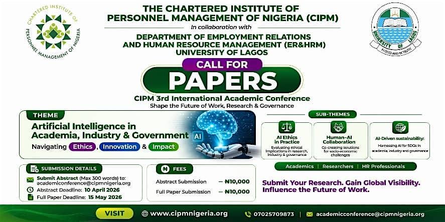 This June, the Chartered Institute of Personnel Management of Nigeria (CIPM), in collaboration with the Department of Employment Relations and Human Resource Management, University of Lagos, convenes the CIPM 3rd International Academic Conference — a premier platform where academia, industry, government, and civil society come together to engage the most consequential technology of our time with rigour, responsibility, and strategic intent.