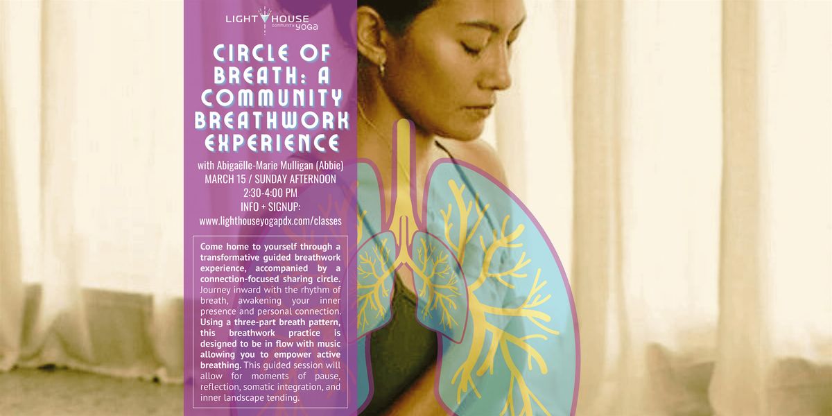 CIRCLE OF BREATH: A COMMUNITY BREATHWORK EXPERIENCE with Abigaëlle-Marie Mulligan (Abbie) @ Lighthouse Community Yoga PDX / MARCH 15 / SUNDAY AFTERNOON / 2:30-4:00 PM