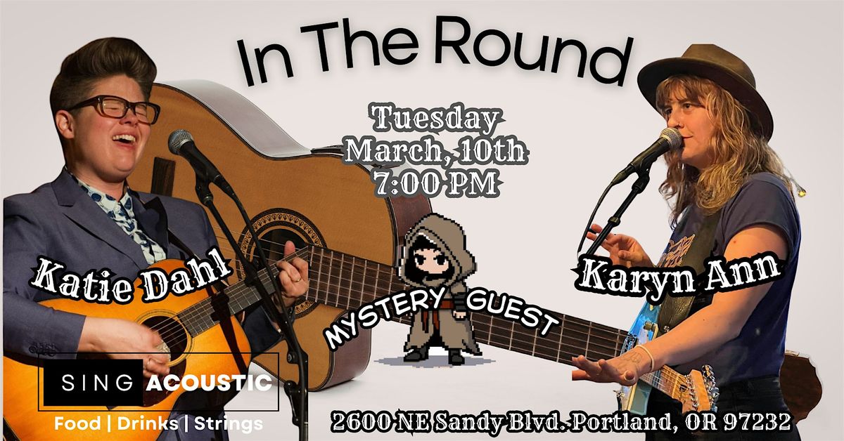 Welcome to Singacoustic for an unforgettable evening of music at Circle of Song: Katie Dahl, Karyn Ann & the Mystery Surprise Guest! Join us on March 10, 2026, at 7:00 PM (Pacific Time) for a night filled with soulful tunes and amazing performances.