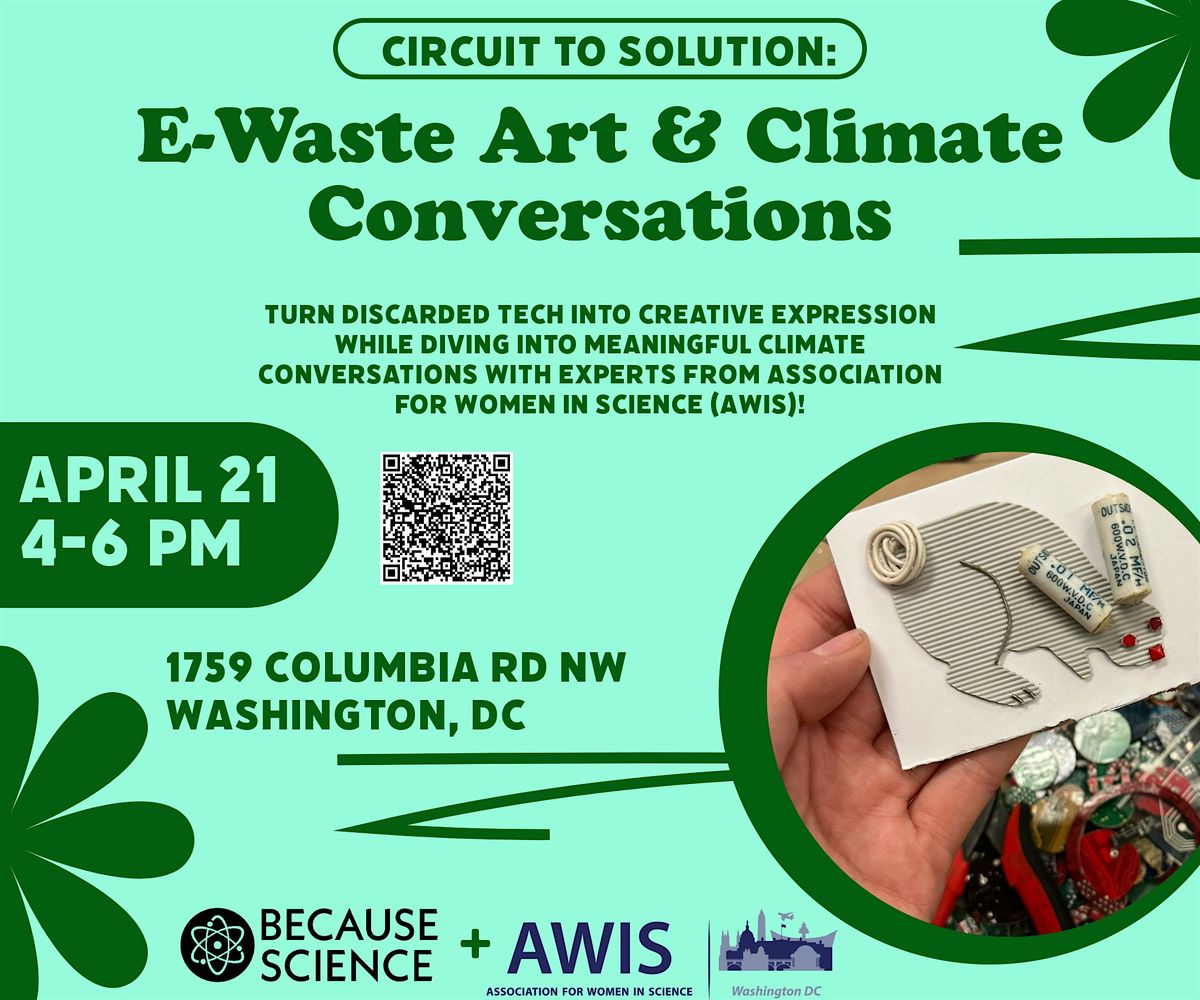 Turn discarded tech into creative expression while diving into meaningful climate conversations with experts from Association for Women in Science (AWIS)! This interactive experience blends art, sustainability, and dialogue—inviting you to reflect on the lifecycle of everyday electronics and the real-world impacts of climate change.