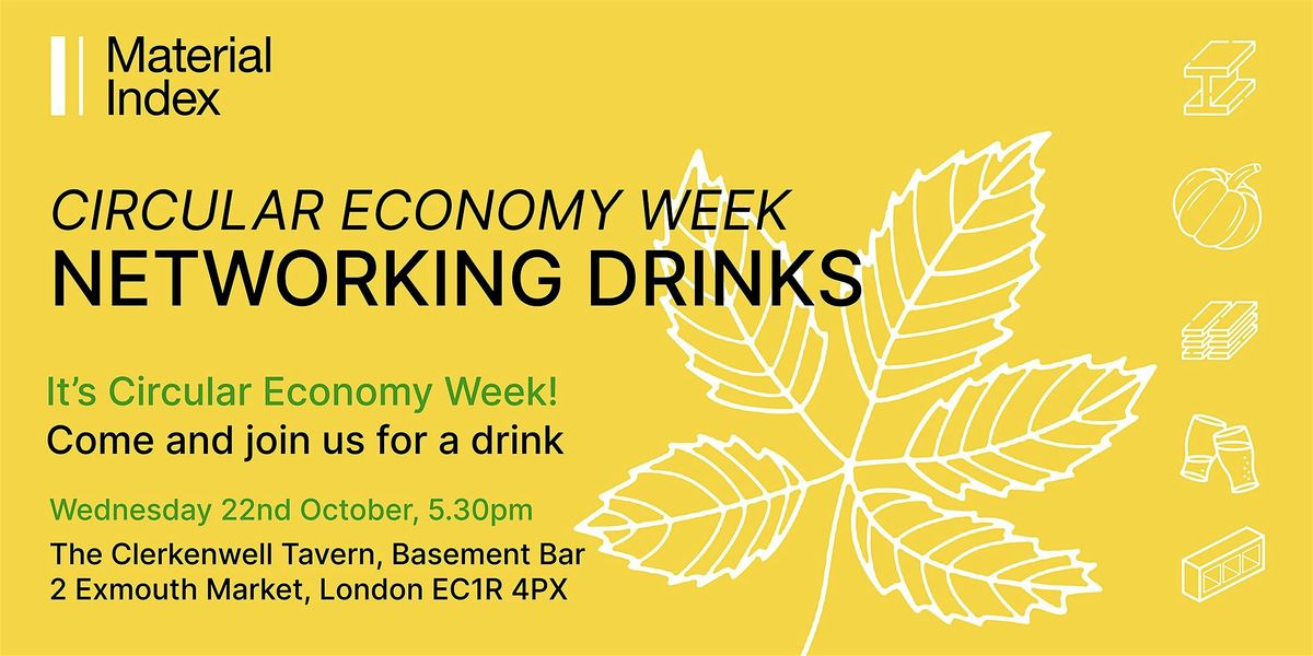 Material Index is hosting after-work drinks at The Basement Bar, The Clerkenwell Tavern, to bring together people in the construction and property industry for London’s Circular Economy Week.