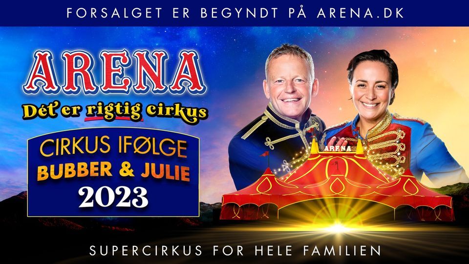 Cirkus Arena fortsætter successen med et nyt supercirkus-show i 2023.Bubber og Julie Berthelsen er tilbage i manegen sammen med et helt nyt hold af verdens bedste artister. I HERNING ved Messecentret 2. og 3. maj kl. 17 med forestillingen 'Cirkus ifølge Bubber og Julie 3'.