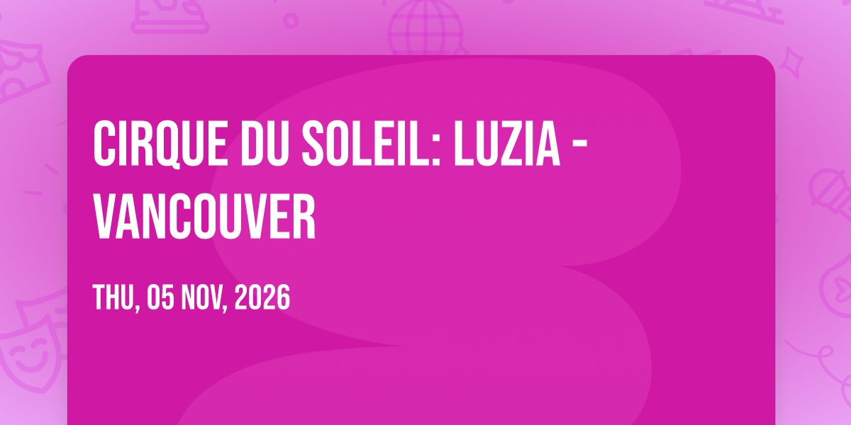 π Location: 49.2604, -123.114β¨ Experience the magic of Cirque du Soleil: Luzia - Vancouver, where moments become memories that last a lifetime! ποΈ The iconic Under The Big Top - Vancouver in Vancouver, BC sets the perfect stage for an unforgettable celebration on November 22nd, 2026 at 09:00 PM. π It's been a curated experience that brings together the best of entertainment and innovation, creating an atmosphere of wonder and excitement. From the moment you arrive, you'll be immersed in a world where the ordinary transforms into the extraordinary. π Book early to secure your place in what promises to be an event that will be talked about for years to come!