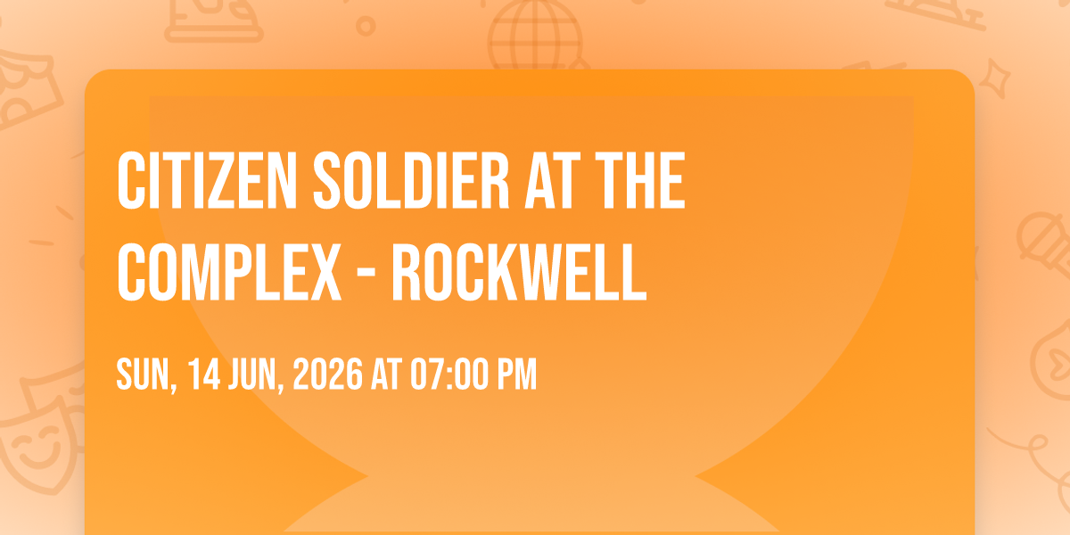 π Be part of history at Citizen Soldier at The Complex - Rockwell, an extraordinary gathering that will captivate your imagination! ποΈ The prestigious The Complex - Rockwell in Salt Lake City, UT sets the stage for an unforgettable experience on June 14th, 2026 at 07:00 PM. β¨ They are bringing together the finest elements of entertainment and innovation to create moments that will take your breath away. From the moment you arrive, you'll be immersed in an atmosphere of wonder and excitement. π― This carefully planned event ensures every guest experiences something truly special. π Early booking is recommended for this must-attend event of the season!
