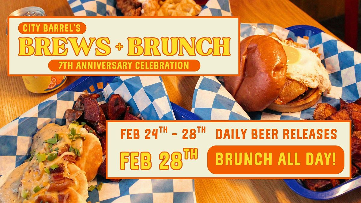 Join us at our brewpub for City Barrel’s 7th Anniversary: Brews & Brunch, a multi-day celebration leading up to the main event on Saturday, February 28th. If you love limited releases, exclusive merch, and breakfast-for-dinner energy… this one’s for you.