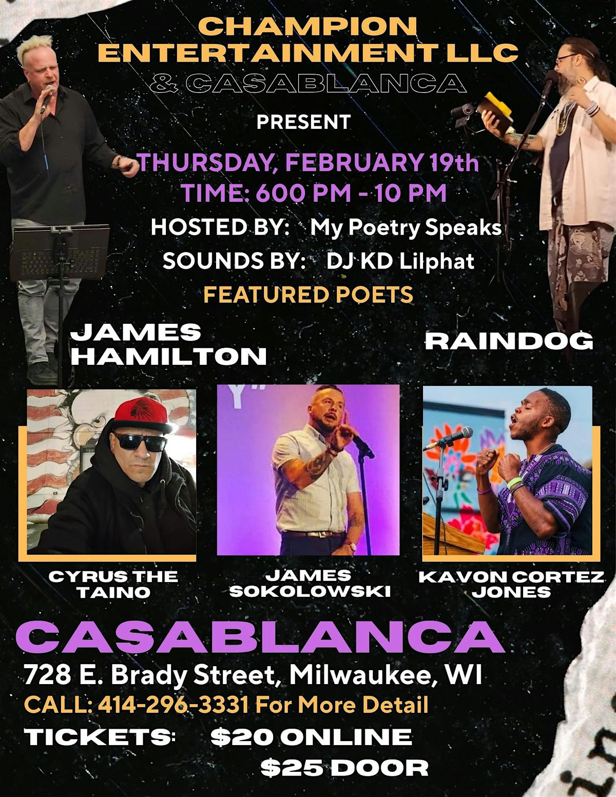 Enjoy this week's heavy weights features JAMES HAMILTON, KAVON CORTEZ JONES, RAINDOG AND CYRUS THE TAINOAgenda
