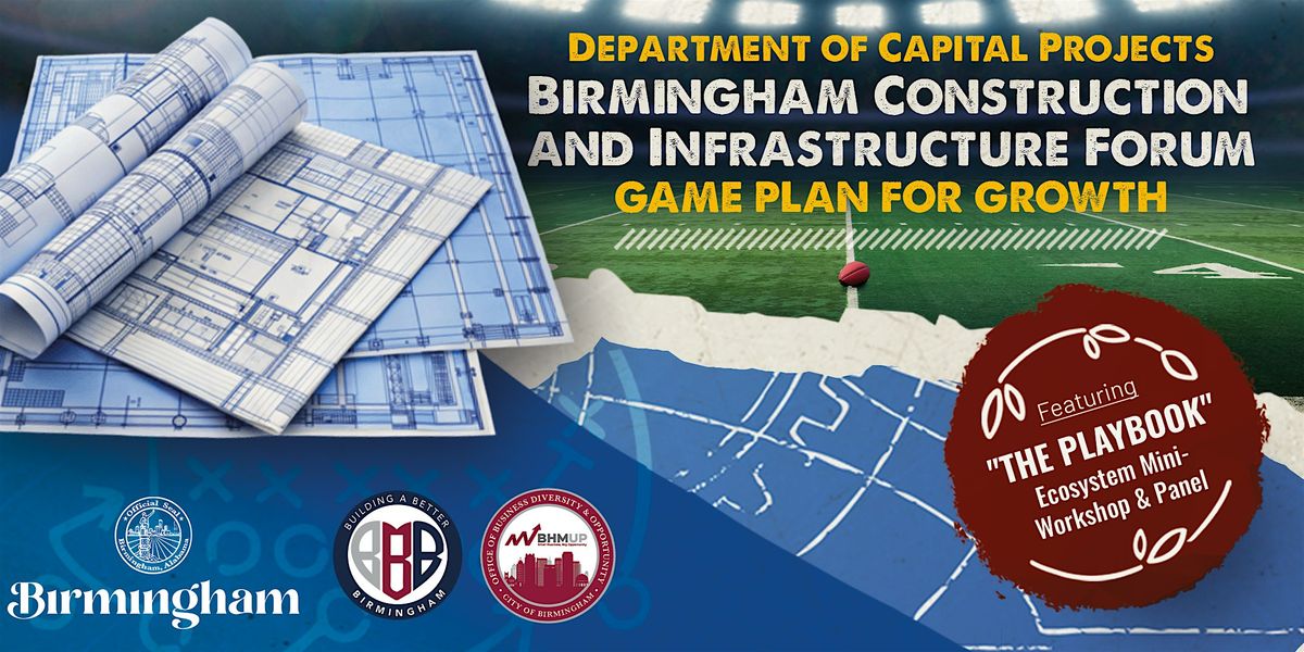 Every winning team needs every position filled with skilled players working together. Join us on Thursday, January 29, 2026, from 10:00 AM to 4:00 PM at Regions Field for the Department of Capital Projects Construction and Infrastructure Forum, with a networking reception immediately following from 4:00 PM to 6:00 PM. This forum is focused on strengthening Birmingham’s construction ecosystem from prime contractors to small and emerging businesses and will explore how local collaboration creates competitive advantages for individual businesses while strengthening the entire Birmingham economy.