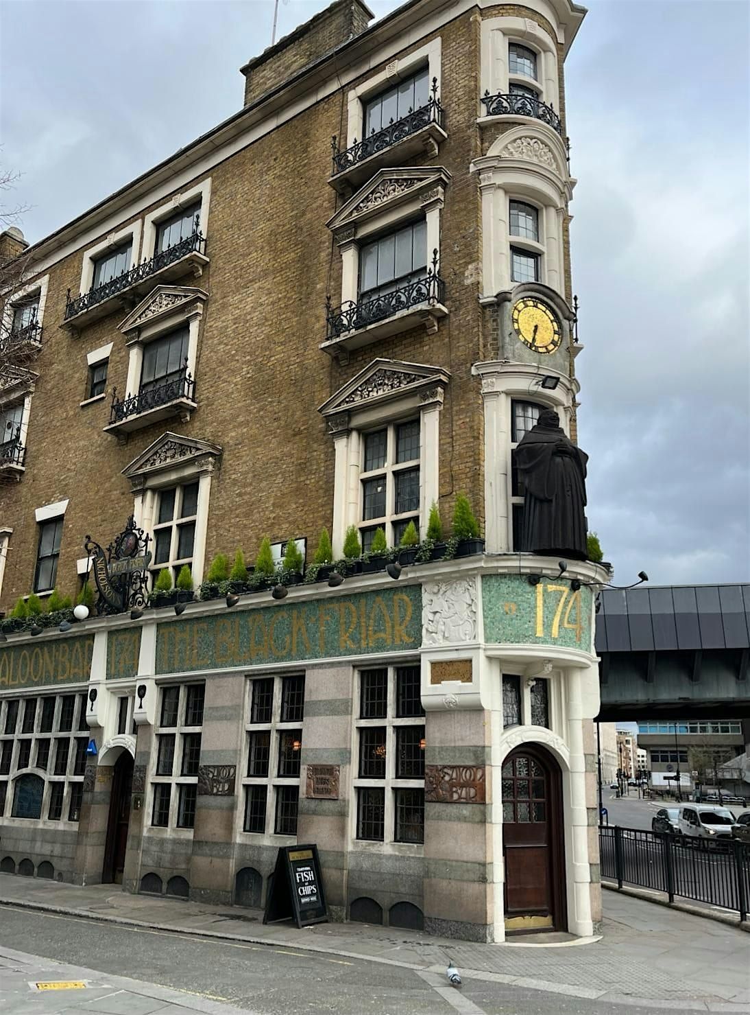 Meet by entrance to Farringdon Elizabeth Line Station opposite the Old Red Cow pub on Long Lane.