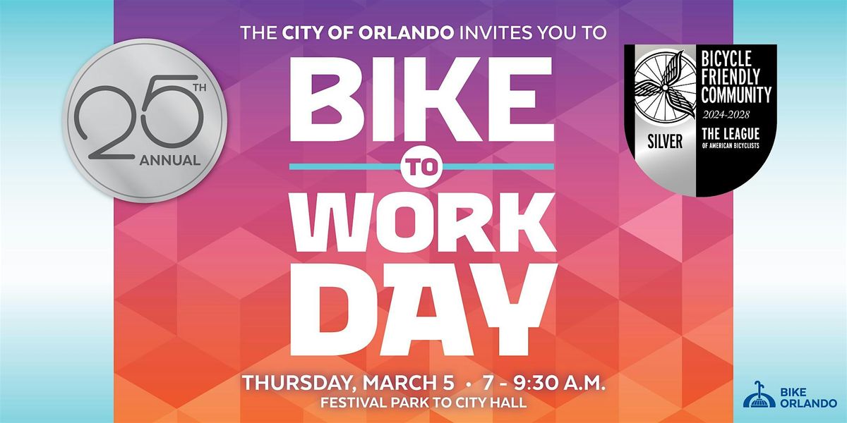 Join City of Orlando Mayor Buddy Dyer for the 25th annual Bike to Work Day! Pedal through downtown Orlando, learn about local bike projects, connect with fellow riders and advocates, and celebrate Florida Bike Month in March.