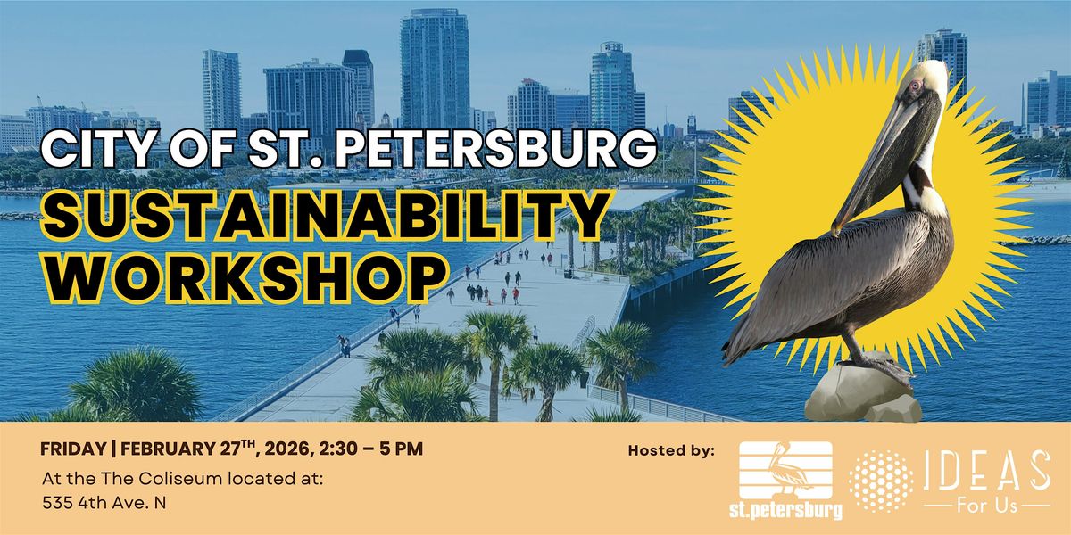 Be part of the future of St. Pete! Join us for an engaging sustainability discussion revisiting the City’s Integrated Sustainability Action Plan and previewing the new Municipal Investment Fund. Your voice helps shape a smarter city, a stronger economy, and a higher quality of life for all who call St. Pete home.