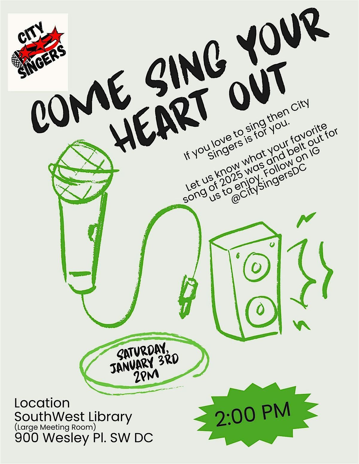 City Singers is back for another round of fun and Sangin. As we start 2026, we will look back at our favorite songs and pass the mic to sing and have everyone else sing along. Follow on IG www.Instagram.com/CitySingersDC and let me know your favorite song you want to sing and share.