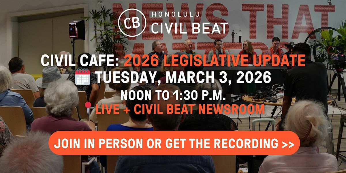 By registering for this event, you'll receive a subscription to Civil Beat's free e-newsletters. And don't worry, we hate spam too! You can unsubscribe any time by clicking the link at the bottom of each email.