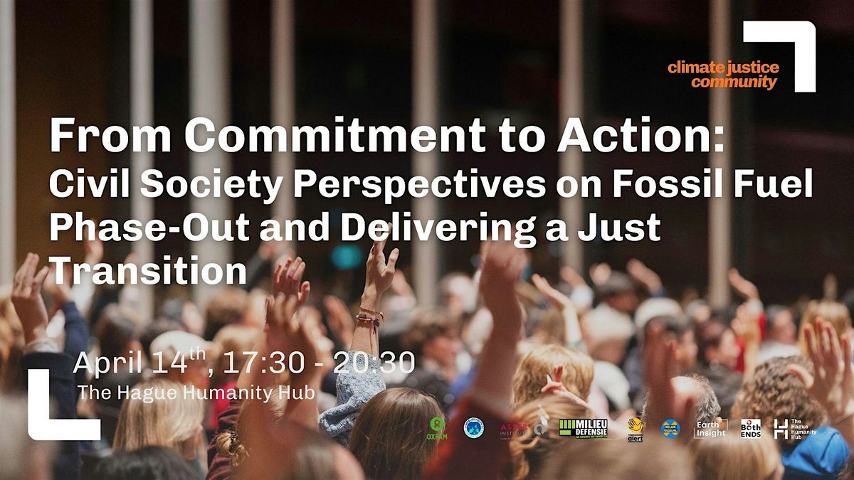 This event is a collaborative initiative organised by: The Hague Humanity Hub, Oxfam Novib, Milieudefensie, International Alert, Reclame FossielVrij, Worldβs Youth for Climate Justice, T.M.C. Asser Institute, Earth Insight and Both Ends.