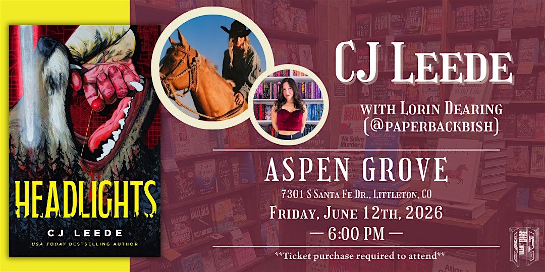 Join us as we celebrate horror author CJ Leede's new book, Headlights (a pulse-pounding hunt for a serial killer across the Colorado wilderness), in a fun conversation with local horror obsessed girly, Lorin Dearing (@paperbackbish) and in partnership with Lady Justice Brewing, an amazing brewery mentioned in the book on Friday, June 12th at 6:00 PM at our Aspen Grove location!