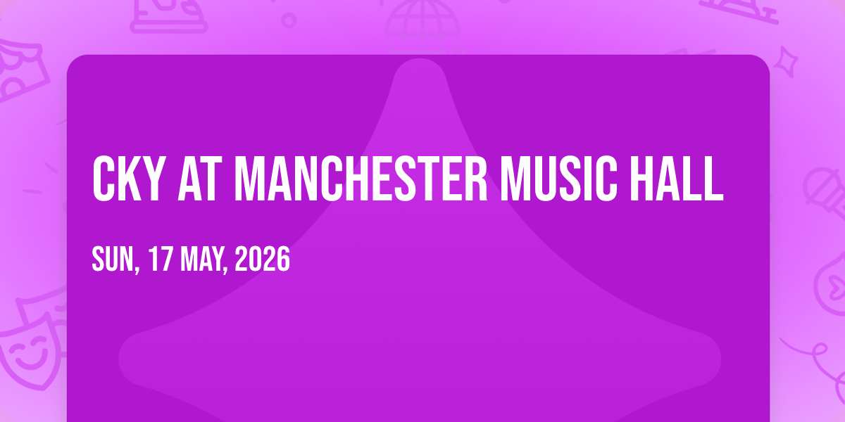 β¨ Embark on an extraordinary journey at CKY at Manchester Music Hall, where every moment promises to be unforgettable! π Imagine of transforming Manchester Music Hall in the heart of Lexington, KY into a realm of endless possibilities. π Join us on May 17th, 2026 at 08:00 PM for an experience that will challenge your imagination and exceed your expectations. π― This carefully curated event combines the finest elements of entertainment, innovation, and community spirit. Whether you're an adventure seeker, culture enthusiast, or someone looking for unique experiences, this event offers something special for everyone. π Don't miss this chance to be part of something extraordinary!