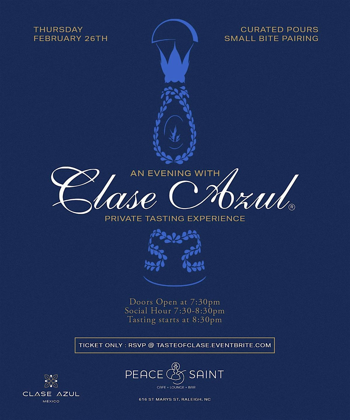 Join us for an intimate and elevated tasting experience featuring the world-renowned Luxury Tequila Brand, "Clase Azul".