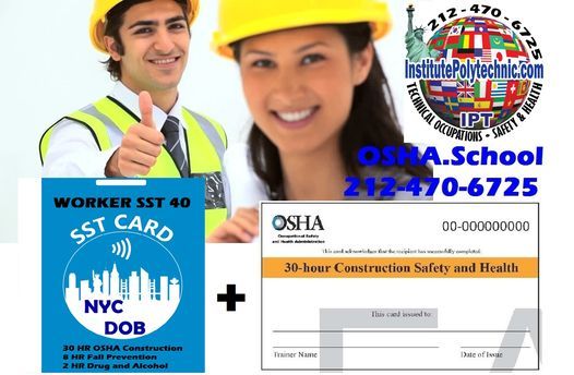 Presencial CLASE 40 HORAS CONSTRUCCION en espanol en QUEENS Diciembre 18, 19, 20, 21 de 9:00AM-5PM y Miercoles 22 Diciembre de 9:00AM-7PM. Obtenga Tarjetas OSHA30 Occupational Safety and Health, SST10 8HR Fall Prevention and 2HR Drug and Alcohol y Tarjeta Unificada SST40 NYC DOB.Local Law 196 Mandates. La Ley Ordena completar capacitacion en OSHA30 al 1 Diciembre 2018 y 60 to 100 Hours Training Program no more September 2020 (en efecto 1 marzo 2021).