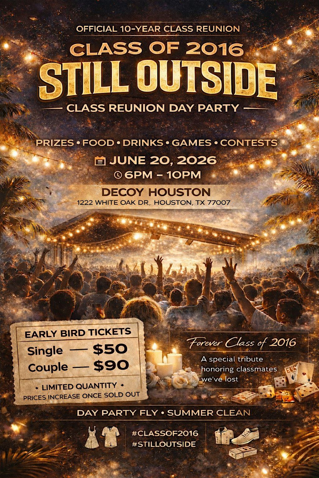 Join us for an unforgettable reunion day party bringing the Class of 2016 back together for music, vibes, memories, and celebration. This is not a sit-down reunion — it’s a day party experience designed to reconnect, celebrate life, and enjoy the journey we’ve all been on.