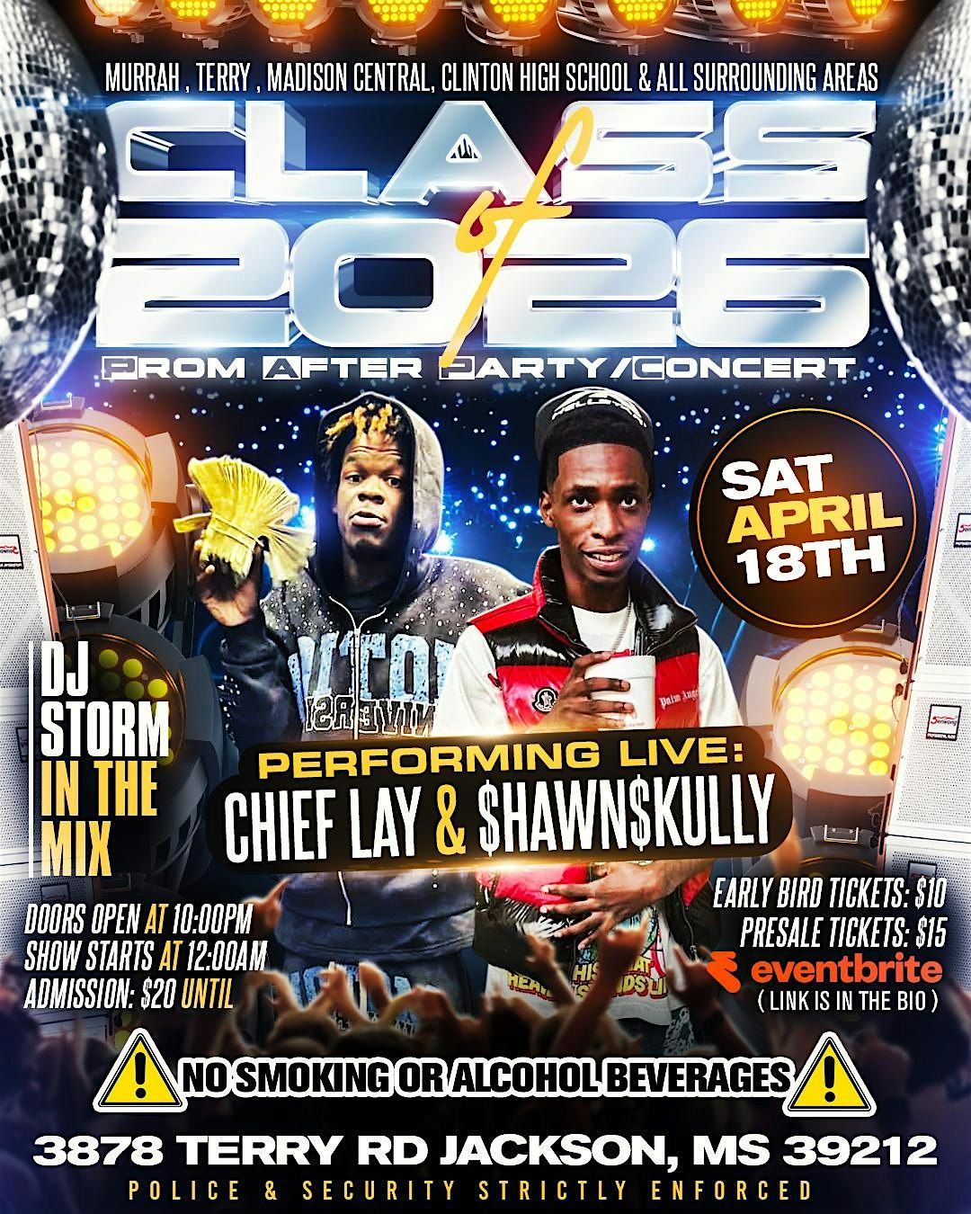 Calling Out ALL high schools!! Class of 2026 Official Prom After Party: Performing live Chief Lay & Shawn Skully- Dj Storm in the Mix