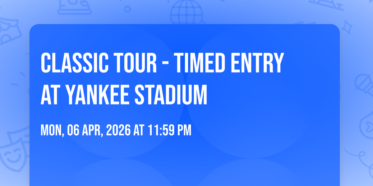 π Journey into wonder at Classic Tour - Timed Entry at Yankee Stadium, where extraordinary experiences await around every corner! ποΈ Set against the backdrop of Yankee Stadium in dynamic Bronx, NY, this event promises to exceed all expectations. π Join us on June 28th, 2026 at 11:59 PM for a celebration that combines innovation, entertainment, and community spirit in perfect harmony. β¨ There will be an atmosphere where memories are made and stories come alive, ensuring every guest experiences something truly remarkable. π This is more than just an event; it's a journey into the extraordinary!