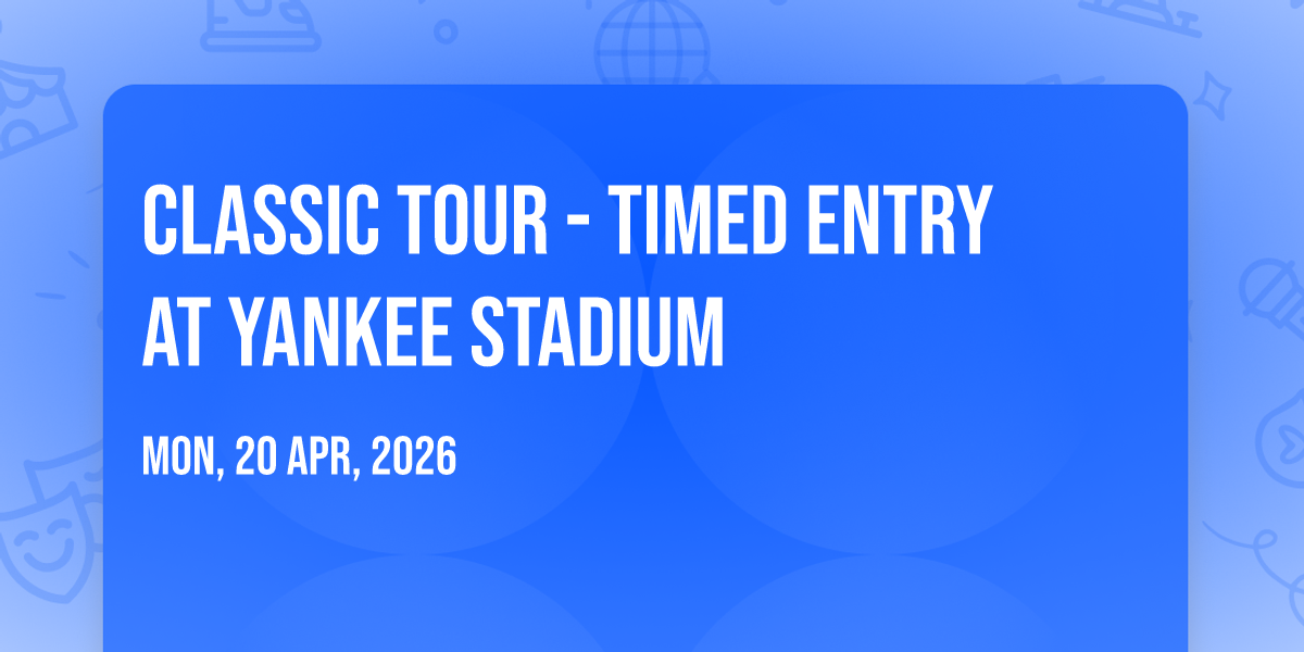 π Journey into wonder at Classic Tour - Timed Entry at Yankee Stadium, where extraordinary experiences await around every corner! ποΈ Set against the backdrop of Yankee Stadium in dynamic Bronx, NY, this event promises to exceed all expectations. π Join us on April 29th, 2026 at 11:59 PM for a celebration that combines innovation, entertainment, and community spirit in perfect harmony. β¨ There will be an atmosphere where memories are made and stories come alive, ensuring every guest experiences something truly remarkable. π This is more than just an event; it's a journey into the extraordinary!