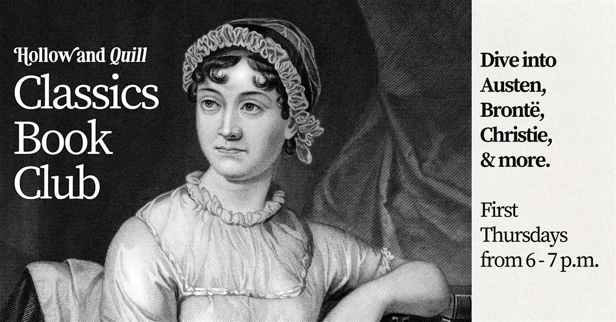 Join us every first Thursday from 6-7 p.m. to dive into literary classics! This club is led by Ariana, Hollow and Quill's co-owner and English Literature PhD candidate.