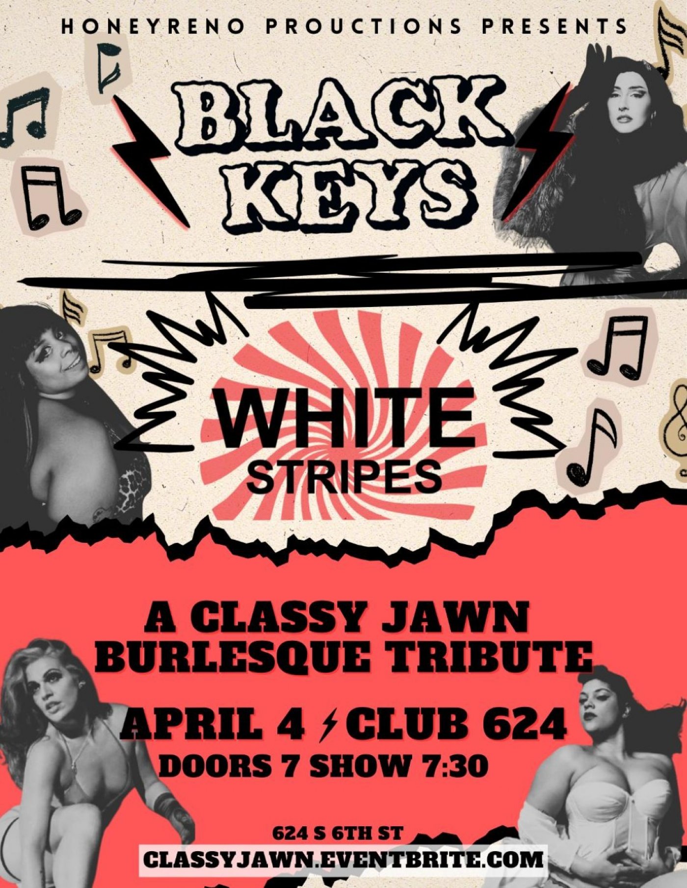HoneyReno productions presents a burlesque tribute to the saucy sounds of The Black Keys and The White Stripes