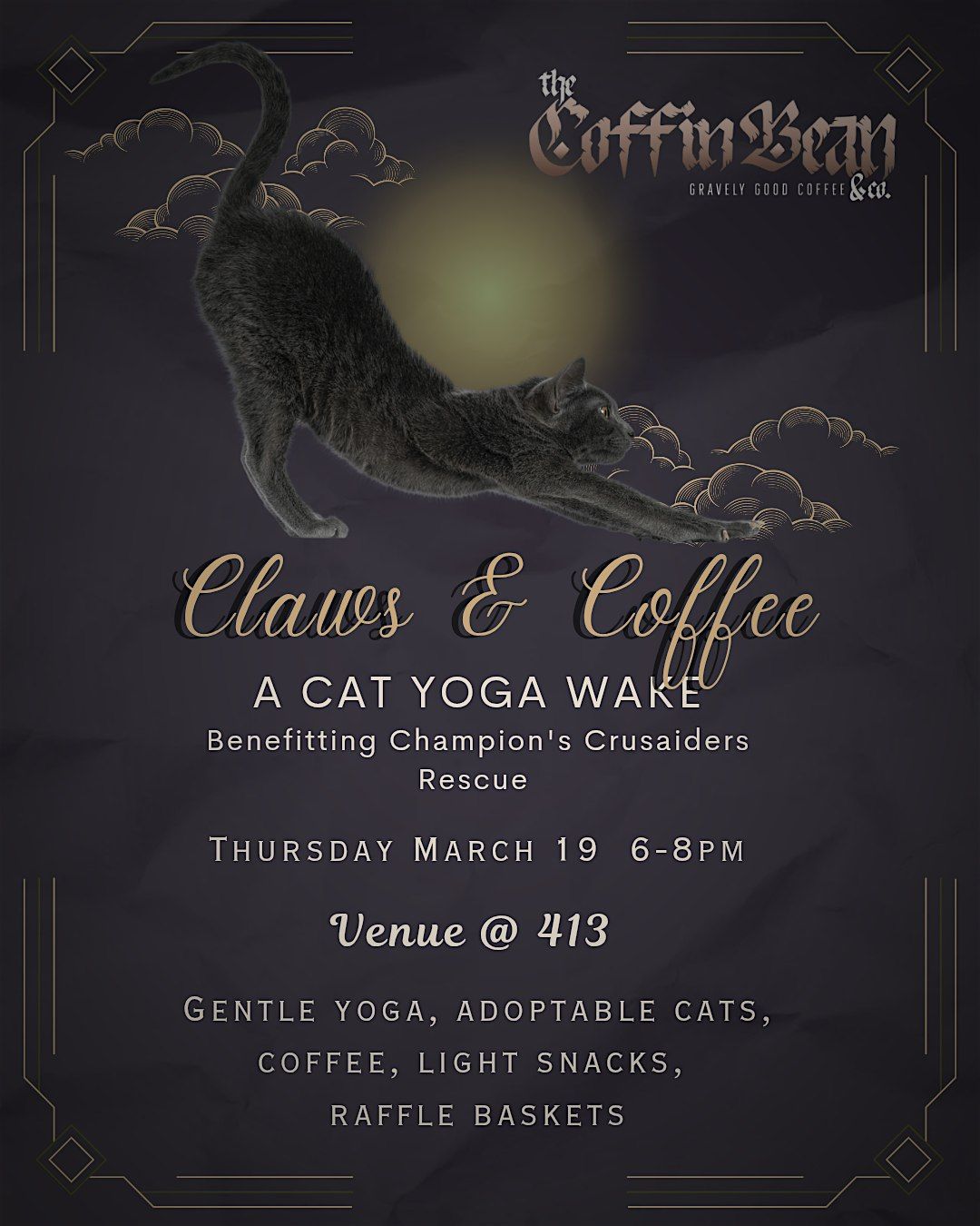 Join us in person for a chill evening of cat cuddles and yoga stretches! Claws and Coffee brings together feline friends and coffee lovers for the purr-fect chill out session. Whether you're a yoga newbie or a seasoned pro, enjoy some zen vibes alongside playful kitties. Stretch, sip, and purr your way to a pawsome evening with friends!