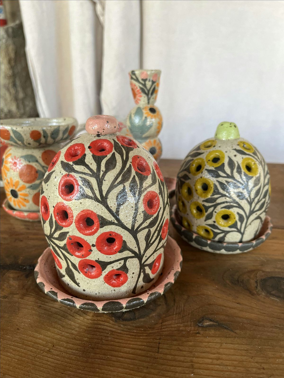 Join me at my Columbia City clay and fiber art studio for a workshop creating your own stoneware candlestick holders, created using a pinch and construction method to build stacked shapes. Yours will be totally unique and can be minimalist or maximalist. You can use geometric and abstract shapes, or playful shapes like animals. Our pieces will be rustic and beautiful! I have tons of underglaze colors to paint them, or you can keep it simple.