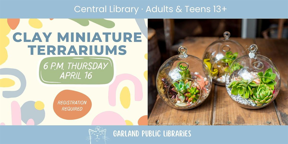 All skill levels are welcome. We’ll be working with polymer clay to craft miniature clay figures. Then we’ll decorate miniature glass jar terrariums to house the clay creations.