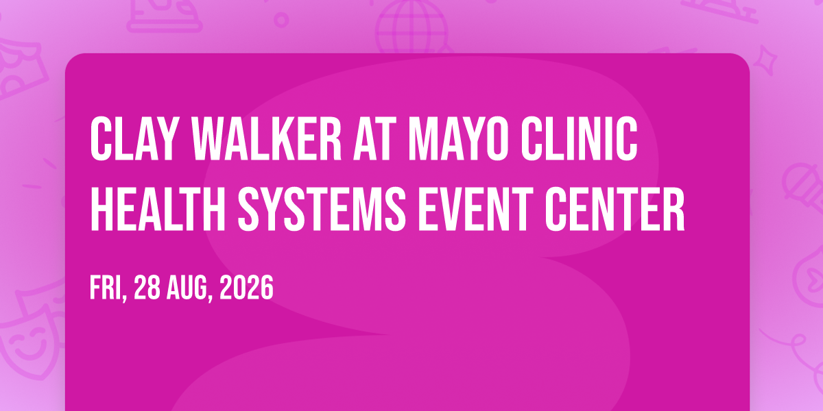 π Be part of history at Clay Walker at Mayo Clinic Health Systems Event Center, an extraordinary gathering that will captivate your imagination! ποΈ The prestigious Mayo Clinic Health Systems Event Center in Mankato, MN sets the stage for an unforgettable experience on August 28th, 2026 at 07:00 PM. β¨ They are bringing together the finest elements of entertainment and innovation to create moments that will take your breath away. From the moment you arrive, you'll be immersed in an atmosphere of wonder and excitement. π― This carefully planned event ensures every guest experiences something truly special. π Early booking is recommended for this must-attend event of the season!