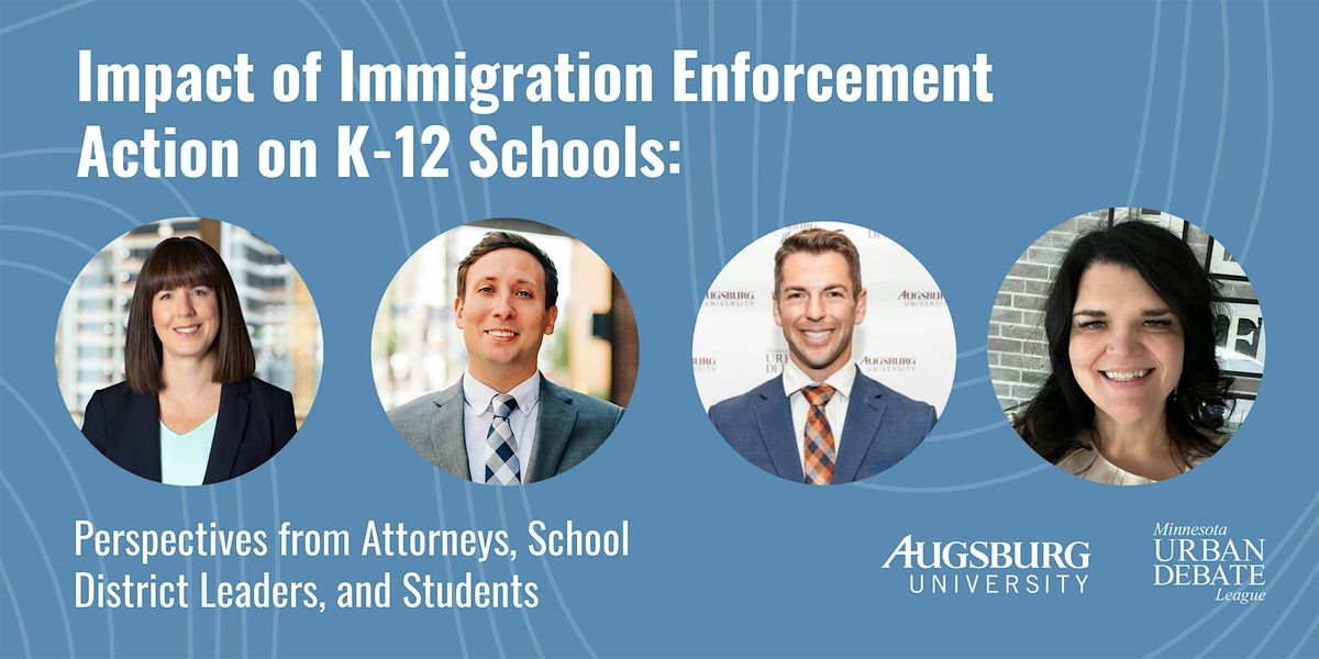 Join us for an important and informative discussion on the impact of immigration enforcement actions on K-12 schools. Hear perspectives from attorneys, school leaders, and students. Attorneys from Education Minnesota, Zimmerman Reed, and Nilan Johnson Lewis will provide an update on the lawsuit to block immigration enforcement activities at or near schools. School leaders and students will share their stories about the impact of enforcement on school operations. 1.0 Elimination of Bias Credits have been applied for. A light lunch will be provided.