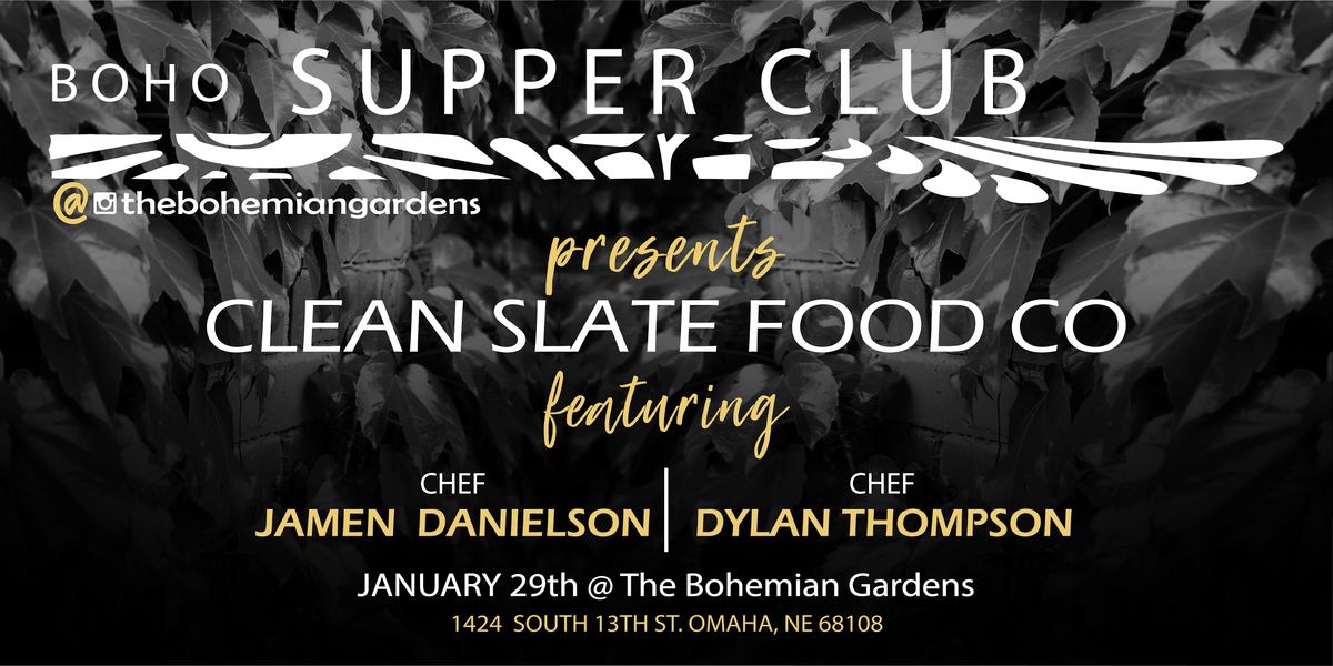 The Bohemian Gardens presents an Evening of Culinary Distinction prepared and executed by Chef Dylan Thompson and Chef Jamen Danielson owners and operators of Clean Slate Food Co.